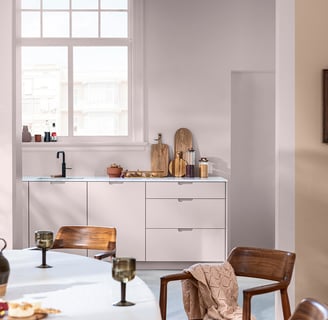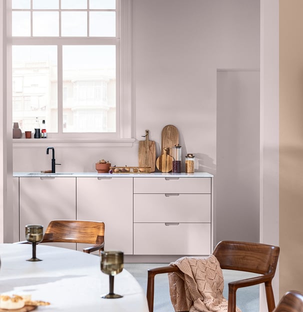 Couleur douce, délicate à la croisée du grège et du beige rosé, cette teinte caméléon vient remplacer le blanc dans votre intérieur. Couleur de l'année par Dulux Valentine elle est facile à associer et une base parfaite pour créer des intérieurs minimalistes, sobres et chics. Associez le au terracotta pour un sentiment de confort et d'authenticité, aux verts et aux bleus qui font écho à la nature pour un coup de frais, aux gris et aux jaunes pour un intérieur convivial.